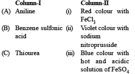 Match the organic compounds in column-I with the Lassaigne’s test results in column-II appropriately: