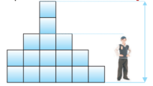 All the blocks in the given figure are identical. The height of the boy given is 144 cm. Find the difference of height between the boy and the topmost block.