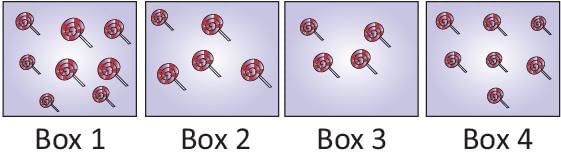 Given below are four boxes with some lollipops inside. Which box has the largest number of lollipops?