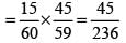 A box contains 15 blue balls and 45 black balls. If 2 balls are selected randomly, without replacement, the probability of an outcome in which the first selected is a blue ball and the second selected is a black ball, is ___________.