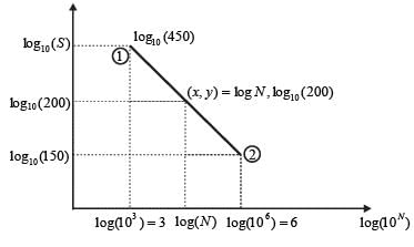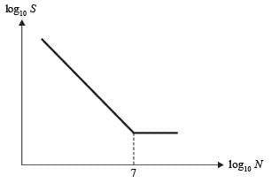 The figure shows the relationship between fatigue strength (S) and fatigue life (N) of a material. The fatigue strength of the material for a life of 1000 cycles is 450 MPa, while its fatigue strength for a life of 106 cycles is 150 MPa.