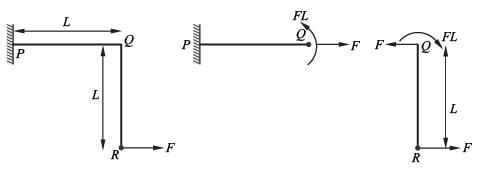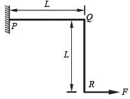 A plane frame PQR (fixed at P and free at R) is shown in the figure. Both member (PQ and QR) have length L, and flexural rigidity EI. Neglecting the effect of axial stress and transverse shear, the horizontal deflection at free end R, is