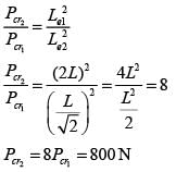 A column with one end fixed and one end free has a critical buckling load of 100 N. For the same column if free end is replaced with a pinned end then critical buckling load will be ______ N (round off to the nearest integer).