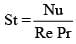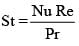 In forced convective heat transfer Stanton number (St), Nusselt number (Nu), Reynolds number (Re) and Prandtl number (Pr) are related as