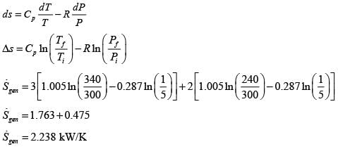 Consider constant specific heat of air is 1005J/kgK and gas constant is 287J/kgK. There is no work transfer across the boundary of this device. The rate of entropy generation is _____ kW/K (round off to one decimal place).