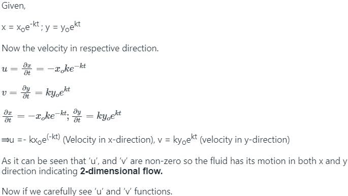 In a Lagrangian system, the position of a fluid particle in a flow is described as x = x0e–kt and y = y0ekt where t is the time while x0, y0, and k are constants. The flow is