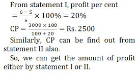 II. प्रत्येक प्रिंटर को बेचे जाने पर अर्जित किया गया लाभ 20% है|