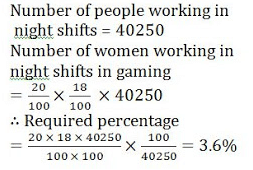 गेमिंग इंडस्ट्री से नाईट शिफ्ट में काम कर रही महिलाओं की संख्या सभी इंडस्ट्रीज से नाईट शिफ्ट में काम कर रहे लोगों की संख्या का कितना प्रतिशत है?