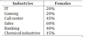कॉल सेण्टर इंडस्ट्री से नाईट शिफ्ट में काम कर रहे पुरुषों और महिलाओं का क्रमशः अनुपात क्या है?