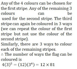 एक नए फ्लैग को छः खड़ी पट्टियों के साथ कुछ या सभी रंग जैसे पीला, हरा, नीला और लाल रंग का प्रयोग करके बनाया जाता है| इसे ऐसे कितने तरीकों से किया जा सकता है जिससे आसपास की दो पट्टियों का रंग एक जैसा न हो?