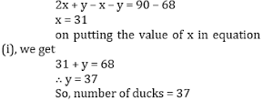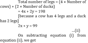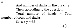 एक पार्क में, कुछ गायें और कुछ बत्तक हैं| यदि पार्क में कुल सिरों की संख्या 68 और उनके पेरों की संख्या 198 है तो पार्क में कितने बत्तक की संख्या ज्ञात करें?