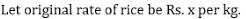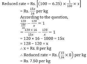 चावल के दाम 6.25% कम हो जाते और इस गिरावट के कारण वंदना 120 रुपए में 1 किलो अधिक चावल खरीद पाती है| चावल के गिरे दाम ज्ञात करें?