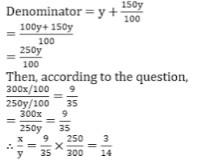 यदि एक भिन्न के हर में 200% की वृद्धि और भिन्न के हर में 150% की वृद्धि कर दी जाए तो आने वाला भिन्न 9/35 होगा| मूल भिन्न क्या है?