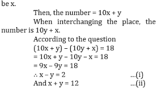 एक दो अंकों वाली संख्या के बीच का अंतर और उस संख्या के दो अंकों को आपस में बदलने पर प्राप्त होने वाली संख्या 18 है| संख्या के दो अंकों का योग 12 है| दो अंकों वाली संख्या के अंकों का गुणन क्या है?