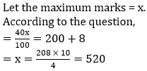 एक परीक्षा को पास करने के लिए 40% अंक लाने आवश्यक हैं| एक उम्मीदवार 200 अंक प्राप्त करता और 8 अंक से असफल हो जाता है| उस परीक्षा के अधिकतम अंक कितने थे?