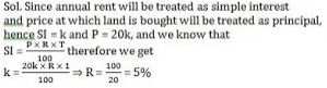 एक व्यक्ति ज़मीन खरीदता है तथा अपने वार्षिक किराय का 20 गुना प्रदान करता है. तो उसकी दर प्रतिशत ज्ञात कीजिये?