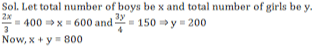 एक स्कूल के लड़कों में से दो तिहाई और लड़कियों में से तीन-चौथाई एक कार्यक्रम में भाग लेते हैं. यदि भाग लेने वाले विद्यार्थियों की कुल संख्या 550 है, जिनमें से 150 लड़कियां हैं, तो स्कूल में कुल कितने विद्यार्थी हैं?