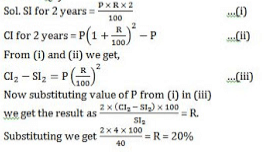 एक राशी पर दो वर्ष के लिए 10% की वार्षिक दर से चक्रवृद्धि ब्याज तथा साधारण ब्याज में अंतर है, जबकि चक्र वृद्धि ब्याज से वार्षिक 4 रुपये तथा साधारण ब्याज से 40 रुपये ब्याज मिलते है, तो ब्याज की दर ज्ञात कीजिये?