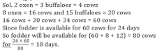 3 भैंसें उतना खाती हैं जितना 4 गाय या 2 बैल खाते हैं. एक फार्म में 15 भैंस हैं, 8 बैल हैं और 24 गाय हैं. इन पशुओं के लिए 24 दिनों के लिए चारा उपलब्ध है. यदि 8 और गाय तथा 9 और भैंस ले आई जाएँ तो चारा कितने दिन तक चलेगा ?