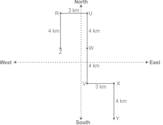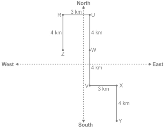 'Z < r;="" v="" %="" x="" @="" y;="" v="" />< w;="" u="" @="" w;="" u="" #="" r'="" means="" 'z="" is="" 4="" km="" south="" of="" r;="" v="" is="" 3="" km="" west="" of="" x,="" x="" is="" 4="" km="" north="" of="" y.="" v="" is="" 4="" km="" south="" of="" w,="" u="" is="" 4km="" north="" of="" w,="" u="" is="" 3="" km="" east="" of="" />