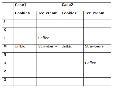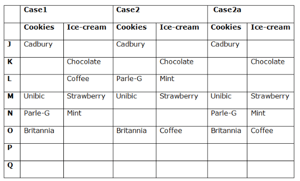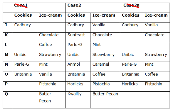 Eight persons-J, K, L, M, N, O, P, and Q are like different cookies- Cadbury, Horlicks, Kwality, Britannia, Parle-G, Sunfeast, Unibic, and Anmol and they are like different flavor ice creams- Vanilla, Butter Pecan, Pistachio, Coffee, Mint, Chocolate, Strawberry, and Caramel. All the information is not necessarily in the same order.