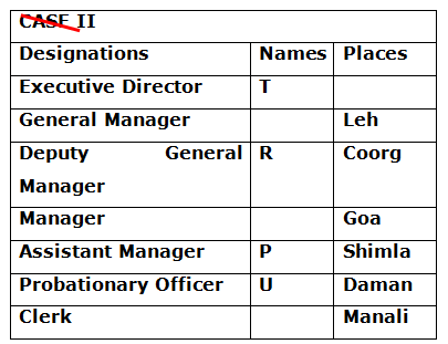 As per these statements, in CASE I, T is an Executive Director and P is a Clerk, while in CASE II T is an Executive Director and P is an Assistant Manager and the arrangement will look like this: