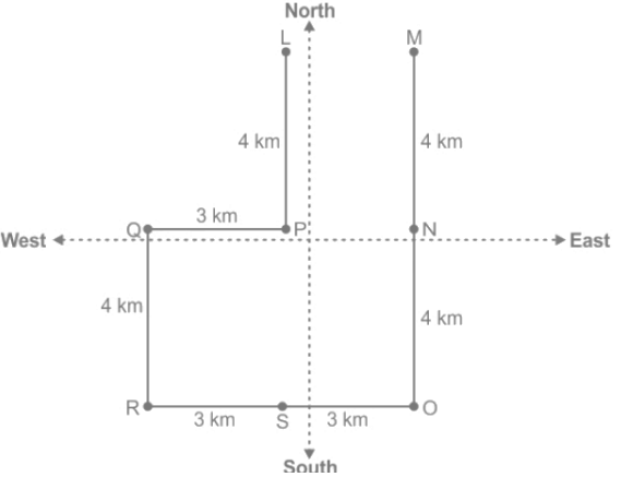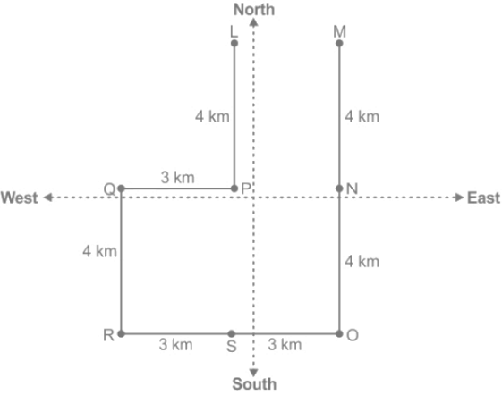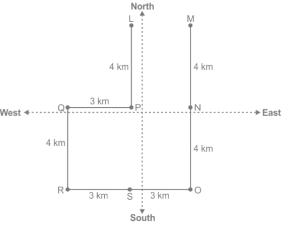 'L @ P # Q @ R; S # R; S % O; N < m;="" n="" @="" o'="" means="" 'l="" is="" 4="" km="" north="" of="" p.="" p="" is="" 3="" km="" east="" of="" q;="" q="" is="" 4="" km="" north="" of="" r.="" s="" is="" 3="" km="" east="" of="" r.="" s="" is="" 3="" km="" west="" of="" o.="" n="" is="" 4="" km="" south="" of="" m.="" n="" is="" 4="" km="" north="" of="" />