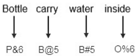 “Bottle carry water inside” is coded as “B@5, B#5, O%6, P&6”.