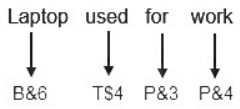 “Laptop used for work” is coded as “T$4, P&3, B&6, P&4”.
