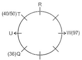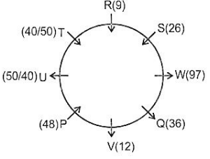 T is not taller than the person who is sitting opposite to T. R, who is 9 years old, sits opposite to one, who sits adjacent to Q, whose age is 36 years. U sits opposite W, whose age is 97 years. T sits to the immediate right of U. U is taller than P, who is taller than R. R and W are not adjacent to each other. A person whose age is a prime number is facing opposite to centre of the circle. The one, whose age is 48 years, sits to the immediate right of one, whose age is 12 years. T age is in multiple of 10. S age is 26 years and is not adjacent to V. Both V and Q are adjacent to each other and facing the same direction. U age is in multiple of 5. The person sitting opposite S is elder to him. R is taller than W, who is taller than Q. V is taller than only the person, who is sitting opposite to P. S and P do not opposite to Q. U and W both face outside the centre.