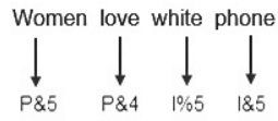 “Women love white phone” is coded as “P&4, I&5, P&5, I%5”.
