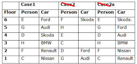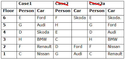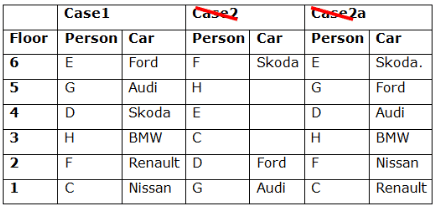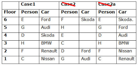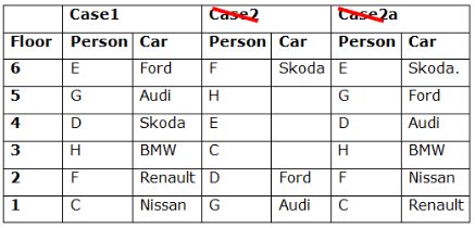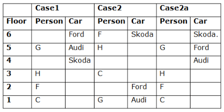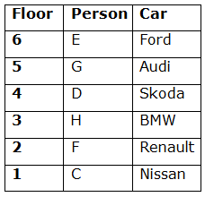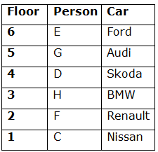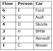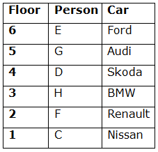 Six persons- C, D, E, F, G, and H are living in the six-floored building. The lowermost floor is numbered as one and the topmost floor is numbered as six. They have different brand cars- Ford, Audi, Nissan, Skoda, BMW, and Renault. All the information is not necessarily in the same order.