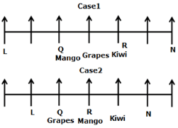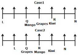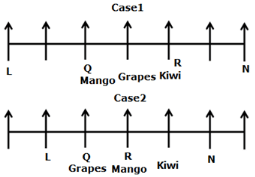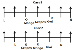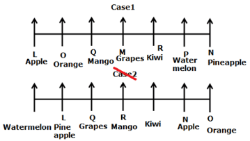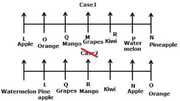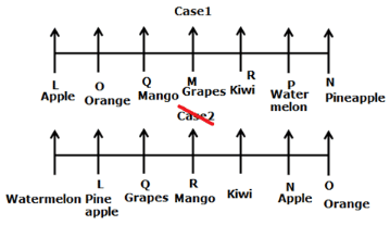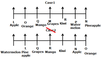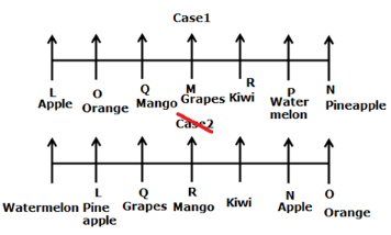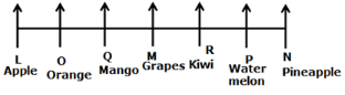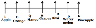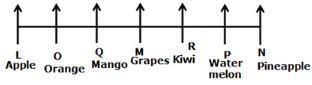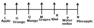 Seven persons- L, M, N, O, P, Q, and R are sitting in the linear row facing the north direction. They like different fruits- Apple, Pineapple, Watermelon, Grapes, Orange, Mango, and Kiwi. All the information is not necessarily in the same order.