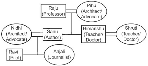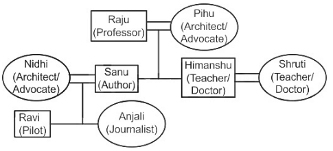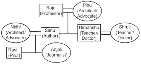 There are eight members in a 3 - generation family having three married couples. The members of the family are Anjali, Himanshu, Ravi, Sanu, Nidhi, Pihu, Shruti and Raju. The professions of all the members are different i.e., Advocate, Architect, Author, Journalist, Doctor, Pilot, Teacher, and Professor but not in the same order. Raju is the paternal grandfather of Ravi and he is a professor. Nidhi and Shruti are daughters-in-law of Raju. Raju does not have a daughter. Sanu is an author. Himanshu and Sanu are off-springs of Pihu. Nidhi is not the wife of Himanshu. Anjali is a journalist and sister of Ravi. The pilot is an unmarried male. Himanshu is not a father. The doctor is married to the teacher.