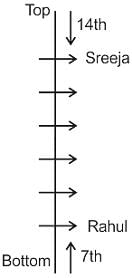 In a class, four students ranked between Rahul and Sreeja. Sreeja ranked 14th from the top while Rahul ranked 7th from the bottom. How many students are there in the class?