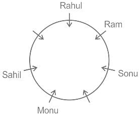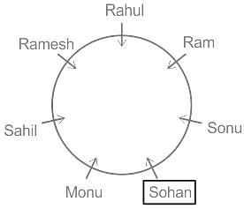 Seven boys Rahul, Ram, Ramesh, Sohan, Sahil, Sonu and Monu are sitting around a circular table facing towards the centre (not necessarily in the same order). Monu is second to the left of Sonu. Sonu is second to the left of Rahul. Sahil is not the immediate neighbour of Sonu. Sahil is third to the right of Ram. Sohan is third to the right of Ramesh.