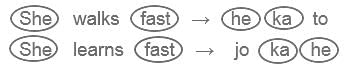 II. In the code language, 'she learns fast' is written as 'jo ka he'.