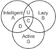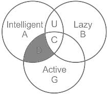 Which region represents the people who are both Intelligent and active but NOT lazy?