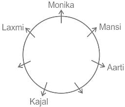 Seven girls Mansi, Shweta, Monika, Payal, Aarti, Kajal and Laxmi are sitting around a circular table facing opposite to the centre (not necessarily in the same order). Aarti is second to the left of Kajal. Monika is third to the right of Kajal. Mansi is not the immediate neighbour of Kajal. Laxmi is second to the left of Mansi. Payal is not the immediate neighbour of Laxmi