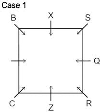 Eight teachers, P, X, Q, Z, R, B, C and S, are sitting around a square table, facing the centre of the table. Four of them are sitting at the corners, while four are sitting at the exact centre of the sides. Q is sitting exactly between R and S. C and S are diagonally opposite to each other. X is sitting exactly between B and S. C is sitting exactly between P and Z. R is sitting at the immediate right of Z. Who is sitting at the immediate right of C?
