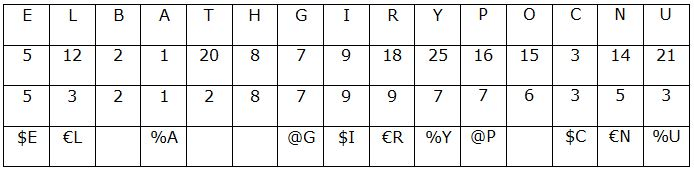 Step 3: If a letter has the sum of the digits of its corresponding number in the English alphabet as an odd number, then place the following symbols ‘$, €, %, @’ respectively from left to right immediately before those letters in the same order. (Continue ‘$’ after ‘@’)