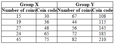 After finding the codes of the type of coins, the codes are arranged in ascending order such that first five codes are categorized in group X and the other 5 are categorized in group.