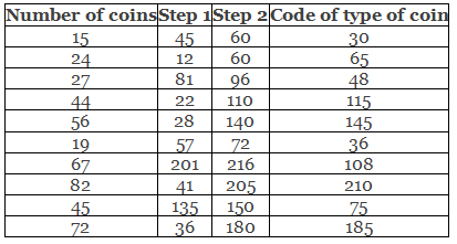 Type of a coin is given by a code. Codes are decided according to the number of coins in a particular type.