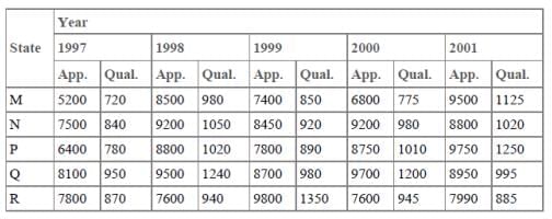 Q. The percentage of total number of qualified candidates to the total number of appeared candidates among all the five states in 1999 is?