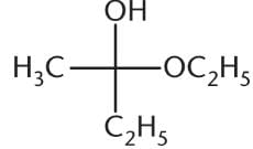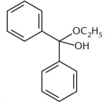 The reaction between a ketone and one equivalent of alcohol produces a hemiketal. This has an –OR group, an –OH group, and two alkyl groups attached at the same carbon. Choice (A) is a ketal, with two –OR groups and two –R groups. Choice (B) is a hemiacetal, with an –OH group, an –OR group, one R group, and a hydrogen atom. Choice (D) is a ketone. Note that a hemiketal is a very unstable compound, and will react rapidly with a second equivalent of alcohol to form a ketal in acidic conditions.