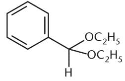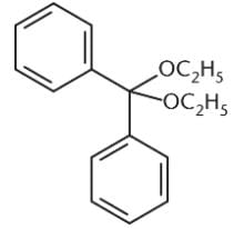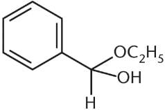 Because an excess of ethanol is present, the product of the reaction between this aldehyde and ethanol will be an acetal. The benzaldehyde will first be converted to a hemiacetal, shown in choice (C), but will then proceed to completion as an acetal. Choices (A) and (B) are incorrect because they show the presence of two benzene rings in the final product.