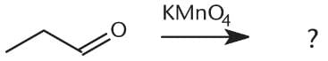 Aldehydes are easily oxidized to the corresponding carboxylic acids by KMnO4. In choice (A), the aldehyde has been reduced to an alcohol. In choice (C), the molecule has not reacted. In choice (D), the aldehyde has been oxidized, but a –CH2– group has been removed.