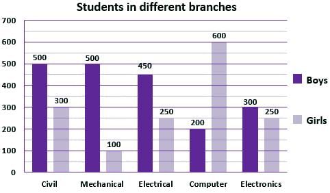 Following bar graph shows number of students of different branches of a college. Study the graph and answer the following question.