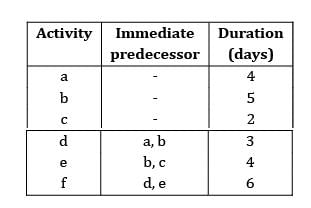 A project consist of following activities
