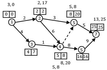 For the project network shown below calculate latest finish time of node 4.
